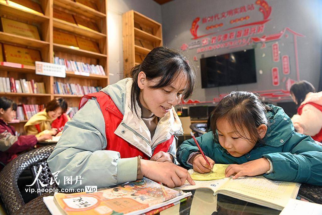 寒假期间,江西宜春宜丰县黄垦镇依托新时代文明实践阵地,积极开展爱心托管服务,开设作业辅导、手工制作、趣味阅读、安全教育、文艺培训等公益课程,让农村留守儿童在轻松愉快的氛围中度过充实、温暖、快乐的假期。周亮摄(人民图片网)